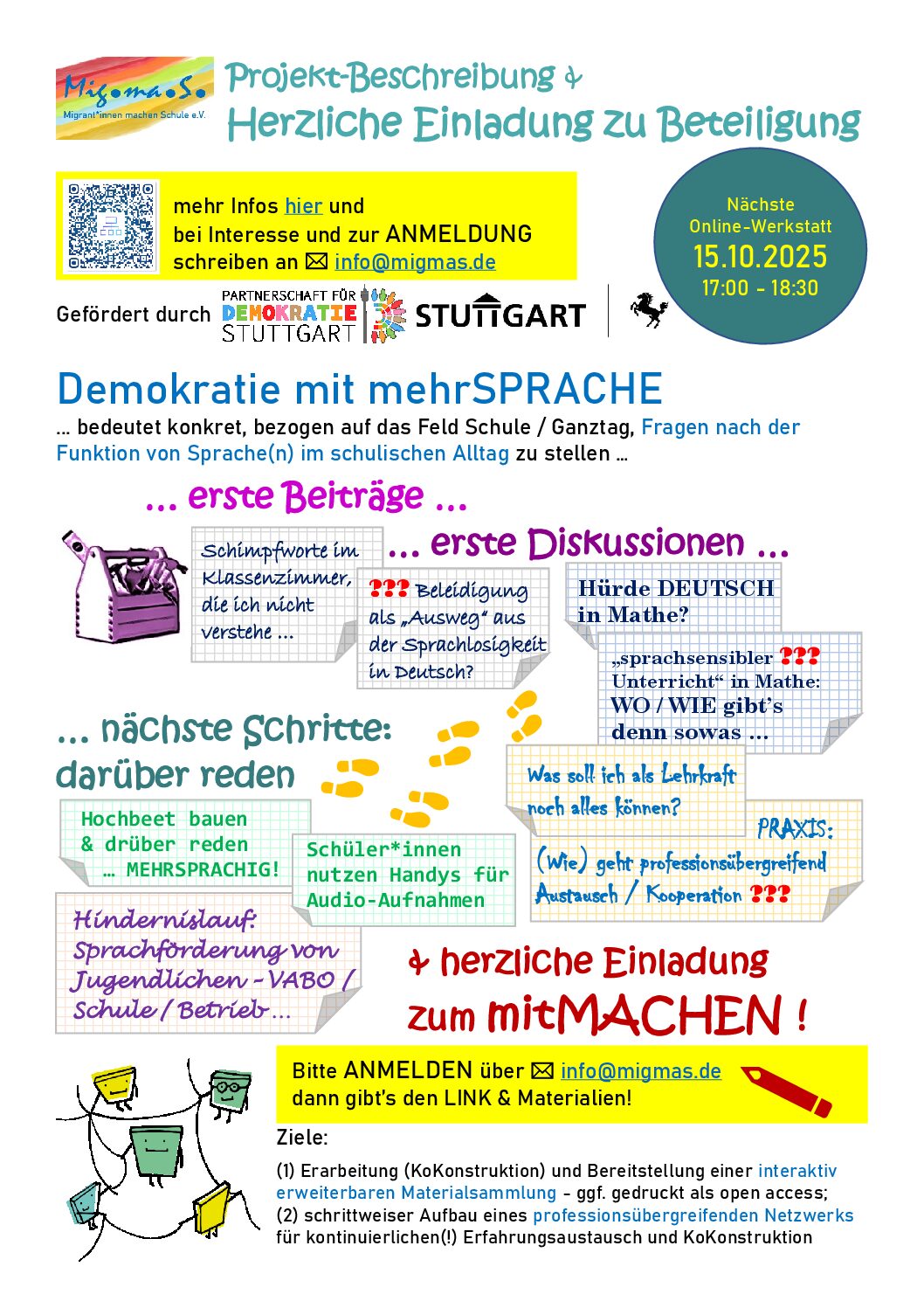 Demokratie mit mehrSPRACHE – ONLINE-Werkstatt: erste Beiträge, erste Diskussionen … Einladung zum mitMACHEN! … mehr unter WERKSTÄTTEN!